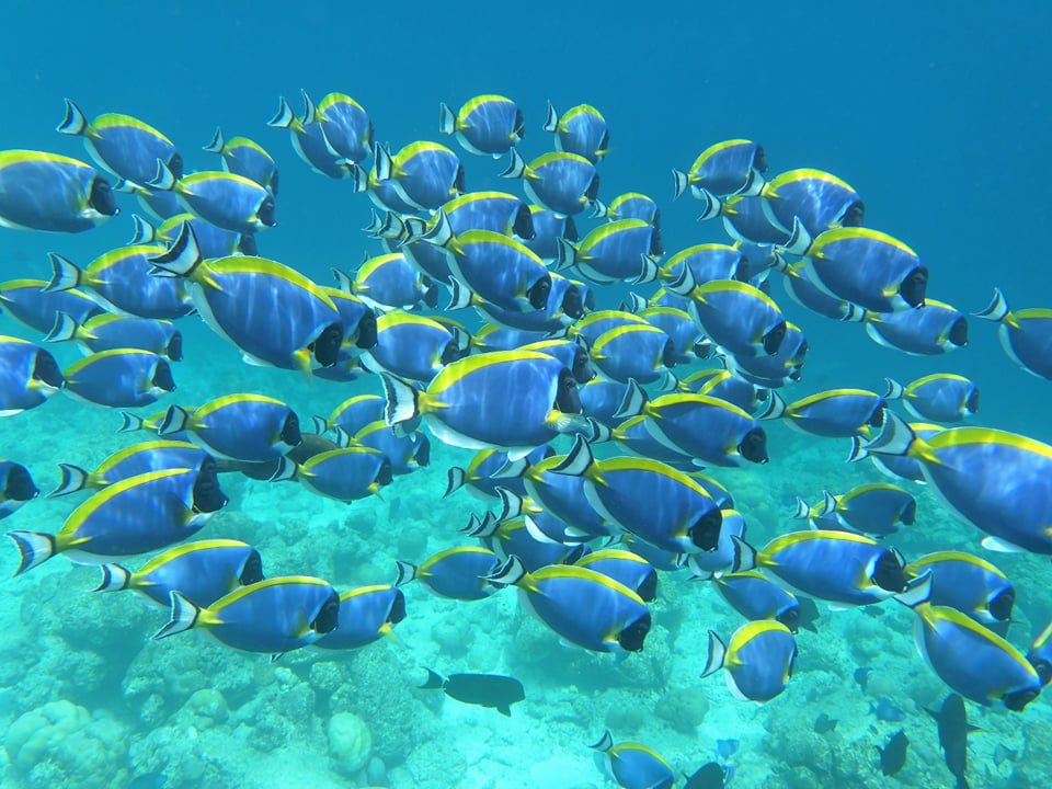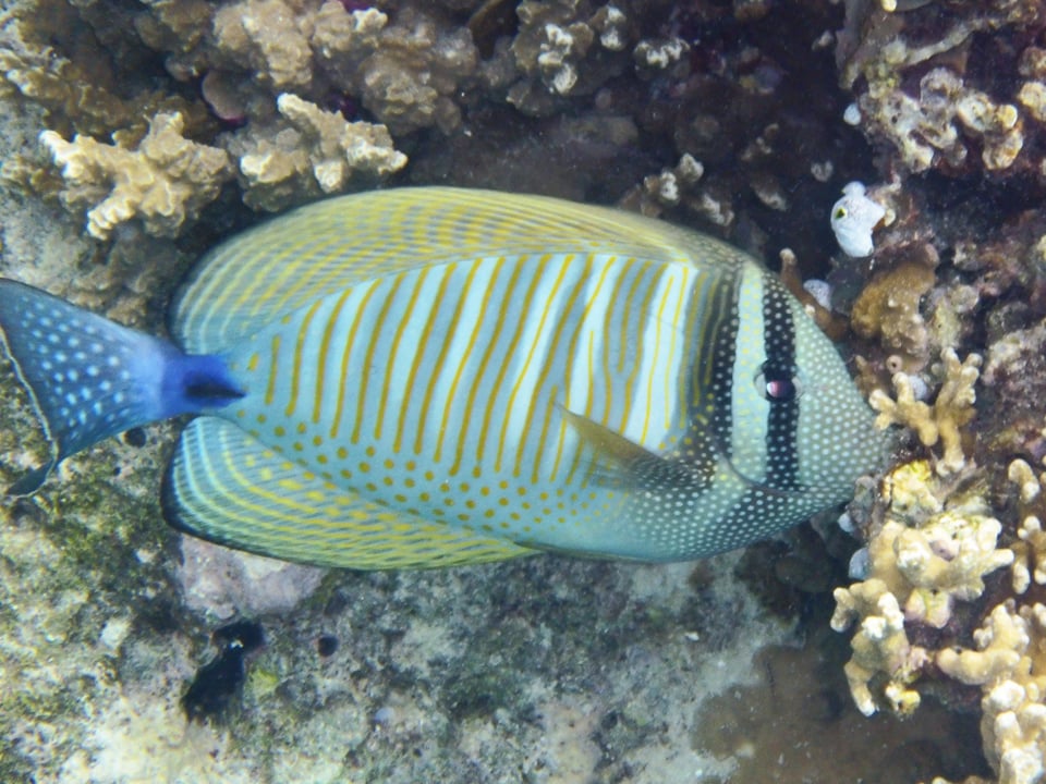 Dette var vår første øy på denne turen og vi svømte rundt øya flere ganger. Selve øya er bare ca 300 meter i diameter. Vi svømte som man ser på streken langs kanten av revet. Bildene rettferdiggjør ikke på noen måte opplevelsen det er å svømme sammen med alle fiskene. Og det er mye mer enn bare fisk å se.
