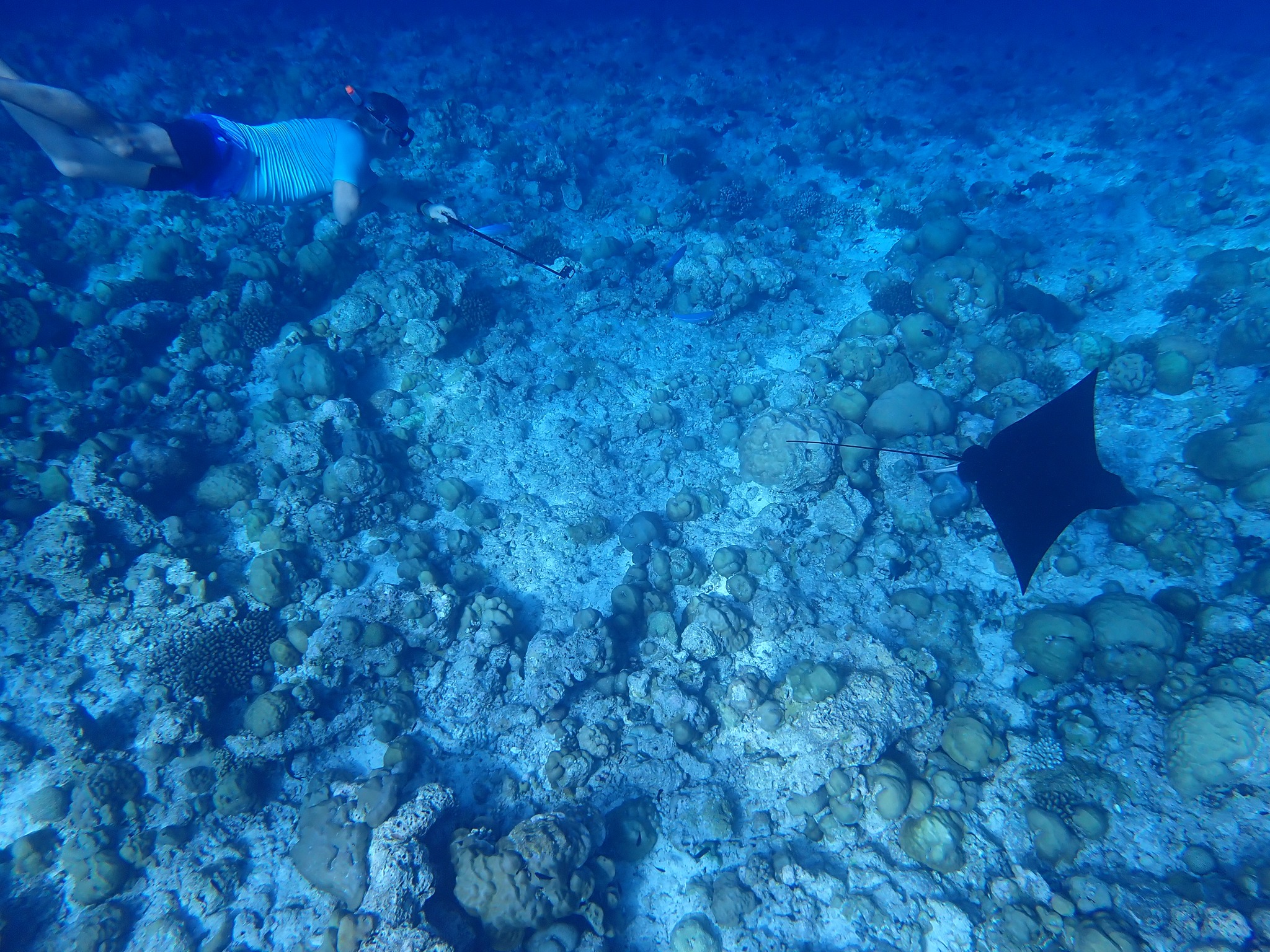 Da har vi forflyttet oss til fjerde og siste øya som heter Malhos, og vært her i 4 dager. Vi har selvfølgelig sjekket ut undervannslivet rundt denne øya også, og fått snorklet 4 og en halv ganger rundt. Vi prøvde oss på en 5 runde siste dagen, men motstrømmen var såpass sterk da vi var kommet halvveis at vi måtte gi oss. Vi kom oss simpelten ikke av flekken - store krefter i sving, og det ble en kraftanstrengelse satt på prøve med det resultat at vi måtte bare la oss drive pent i retur med strømmen som tok oss tilbake til start igjen enten vi ville eller ikke 🙃🌊🌊🌊🌊🌊